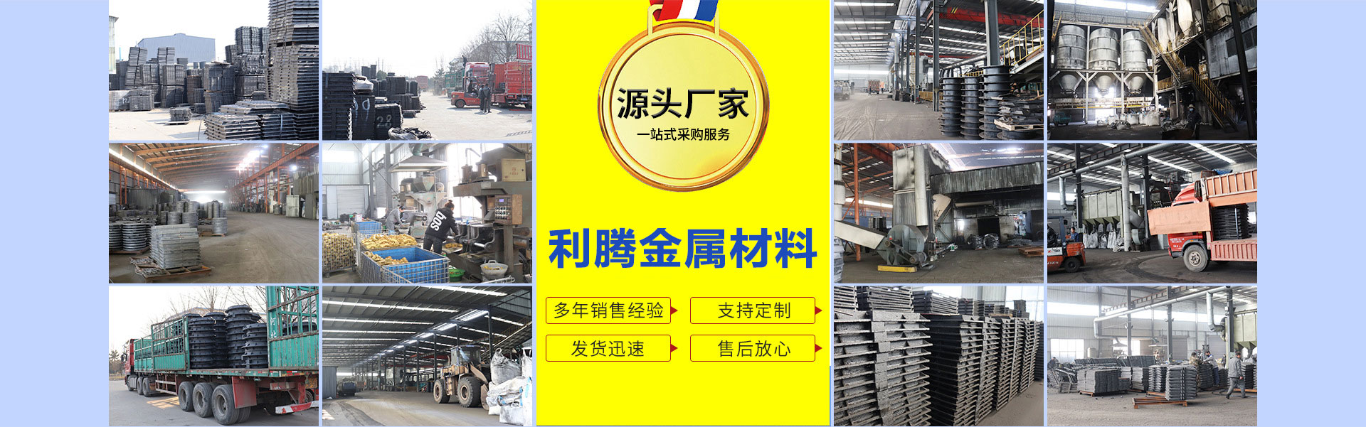 山東利騰金屬材料有限公司座落在風景秀麗的江北水城——山東省聊城市,我公司主要生產經營:球墨鑄鐵普通圓井蓋 球墨鑄方井蓋 球墨鑄鐵雨水篦子 球墨鑄鐵單篦子 市政防沉降井蓋 球墨鑄鐵外方內圓井蓋 球墨鑄鐵防沉…